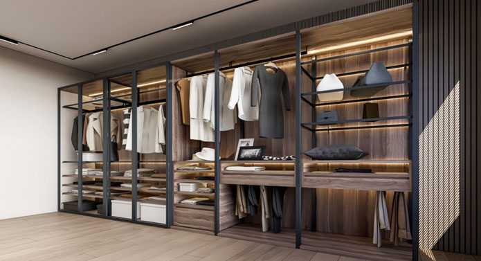 A modular wardrobe is a customizable and pre-designed storage solution, built with separate units or modules that can be assembled to fit different spaces and styles. Unlike traditional wardrobes, modular wardrobes are flexible, space-efficient, and modern in design. They combine functionality with aesthetics, offering flexible storage options such as adjustable shelves, hanging sections, drawers, shoe racks, and accessories that keep your belongings neatly organized. Available in a wide range of finishes like laminates, glass, acrylic, and wood textures, modular wardrobes add elegance and style to any interior.